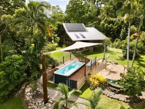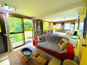 Curlew Cottage is the perfect pet friendly accommodation Airlie Beach for those travelling with multiple pets. Located on a 7-acre property, this holiday cottage rental provides ample space and is just 11km from Airlie Beach. The cottage features a king-size bed, an outdoor private shower, and an outdoor kitchen setup. Book now at Curlew Cottage.