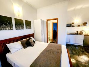Nestled in the lush surroundings of Strathdickie, Butterfly Studio Whitsundays is a pet friendly holiday cabin that can comfortably accommodate three people and big dogs. Enjoy the tranquillity and seclusion of Strathdickie while still being just a 15-minute drive away from the bustling town. The cabin comes with a full kitchen, television, internet, laundry facilities, and access to a BBQ grill and pool. Book now at Butterfly Studio Whitsundays.