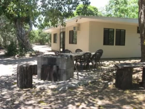 Hideaway at Sinclair Bay Resort in Hideaway Bay. This private pet friendly unit is located waterfront and offers a single bedroom with air conditioning, a BBQ, and both indoor and outdoor dining areas. Relax by the outdoor fire pit and enjoy the beauty of this hidden beach treasure while your pets keep you company. remember to take pet supplies and pet food with you as there are no shops close by. Book now at Sinclair Bay Resort.